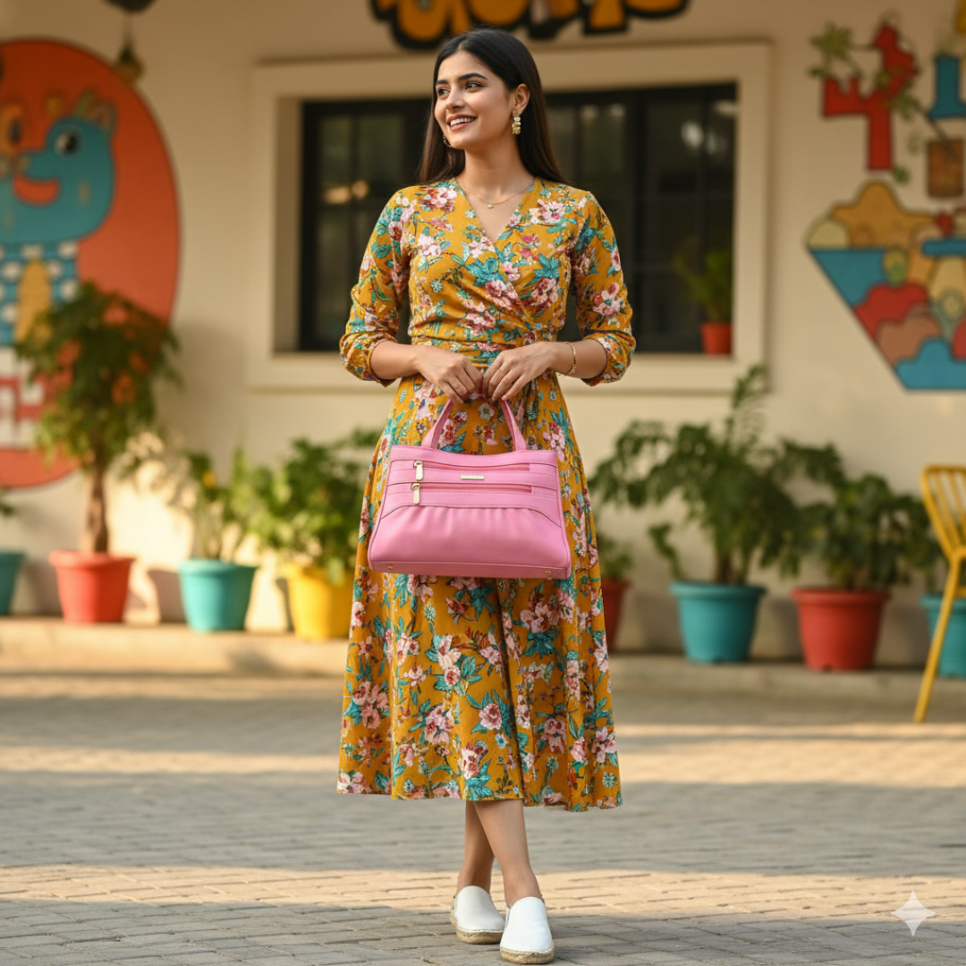 Make every outing chic with the Blush Structured Pink Tote—a perfect blend of style and function for modern women. Crafted in soft, durable synthetic leather, this everyday essential features a spacious silhouette, two easy-access zipped compartments with golden accents, and sturdy dual shoulder handles for comfortable carry. The light pink color and minimalist design offer a fashion-forward look that pairs beautifully with any outfit, making it ideal for work, shopping, or casual brunches.
