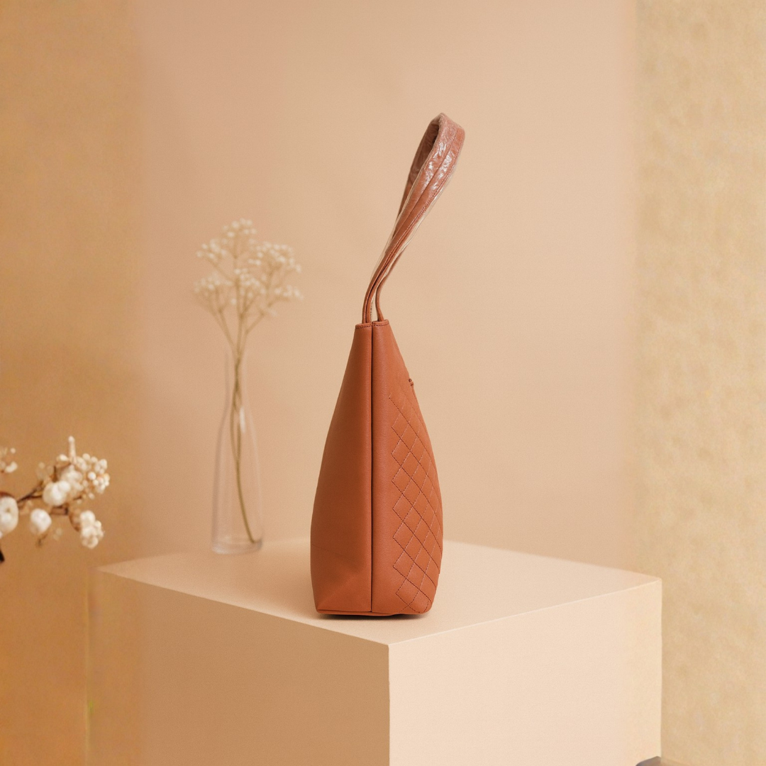 A beautifully designed quilted brown tote bag that blends fashion with functionality, offering a sophisticated look for daily and office use.