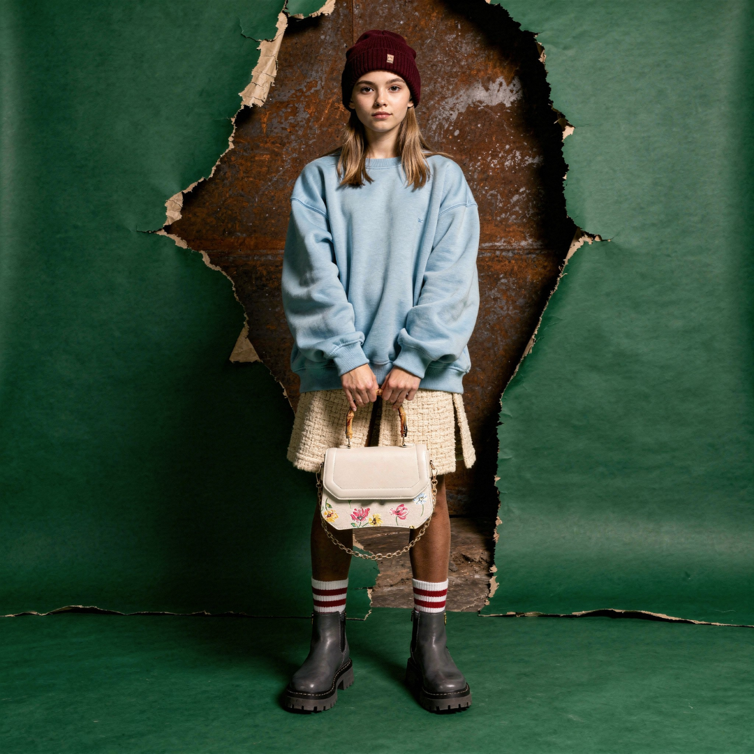 Elevate your style with this chic floral Satchel handbag. designed to add a touch of sophistication to any outfit. Crafted with high-quality faux leather, this bag features a unique bamboo-styletop handle and a removable gold chain strap for versatile carrying options—wear it as a handbag, crossbody, or shoulder bags.